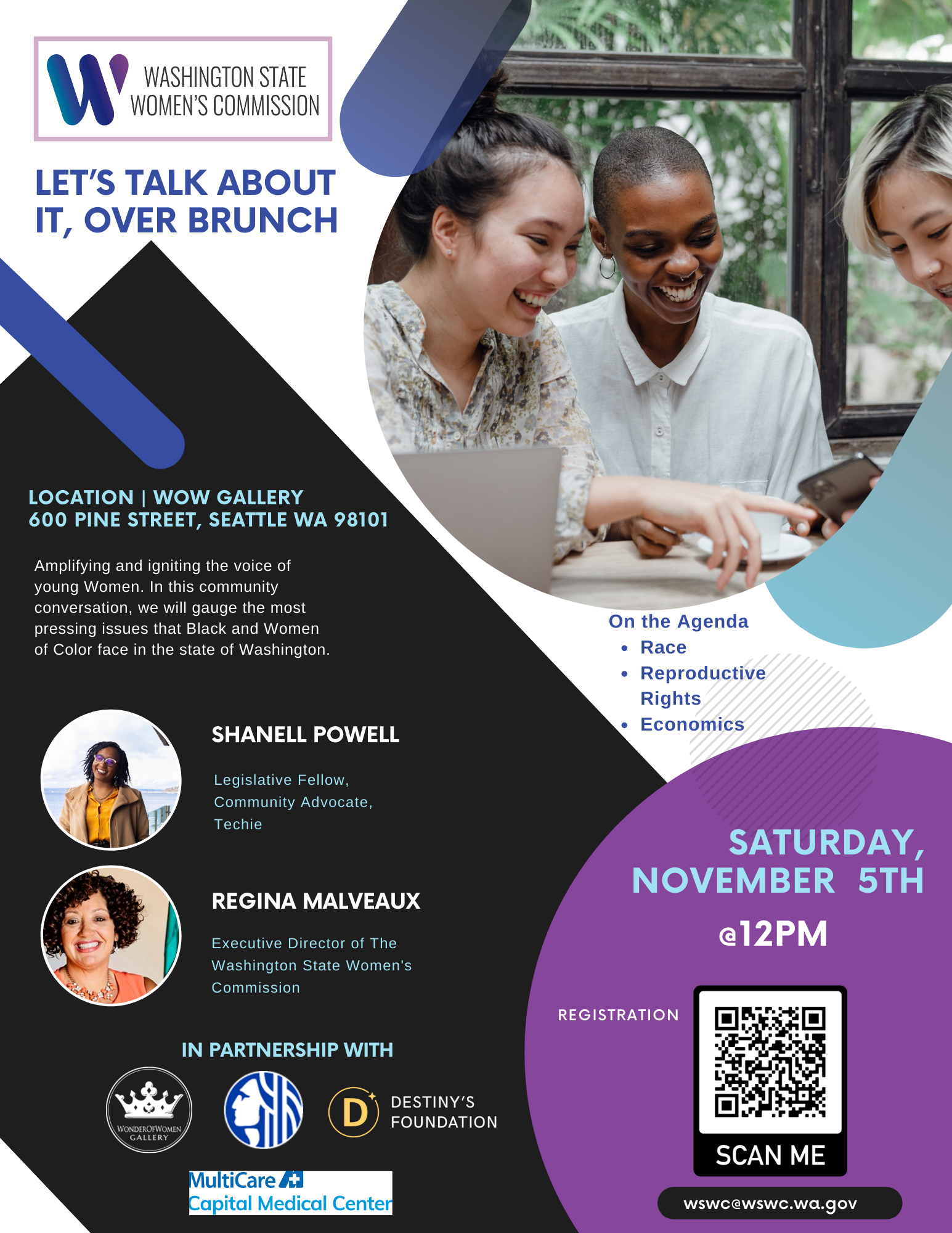 In this community conversation, we will gauge the most pressing issues that Black and Women of Color face in the state of Washington.