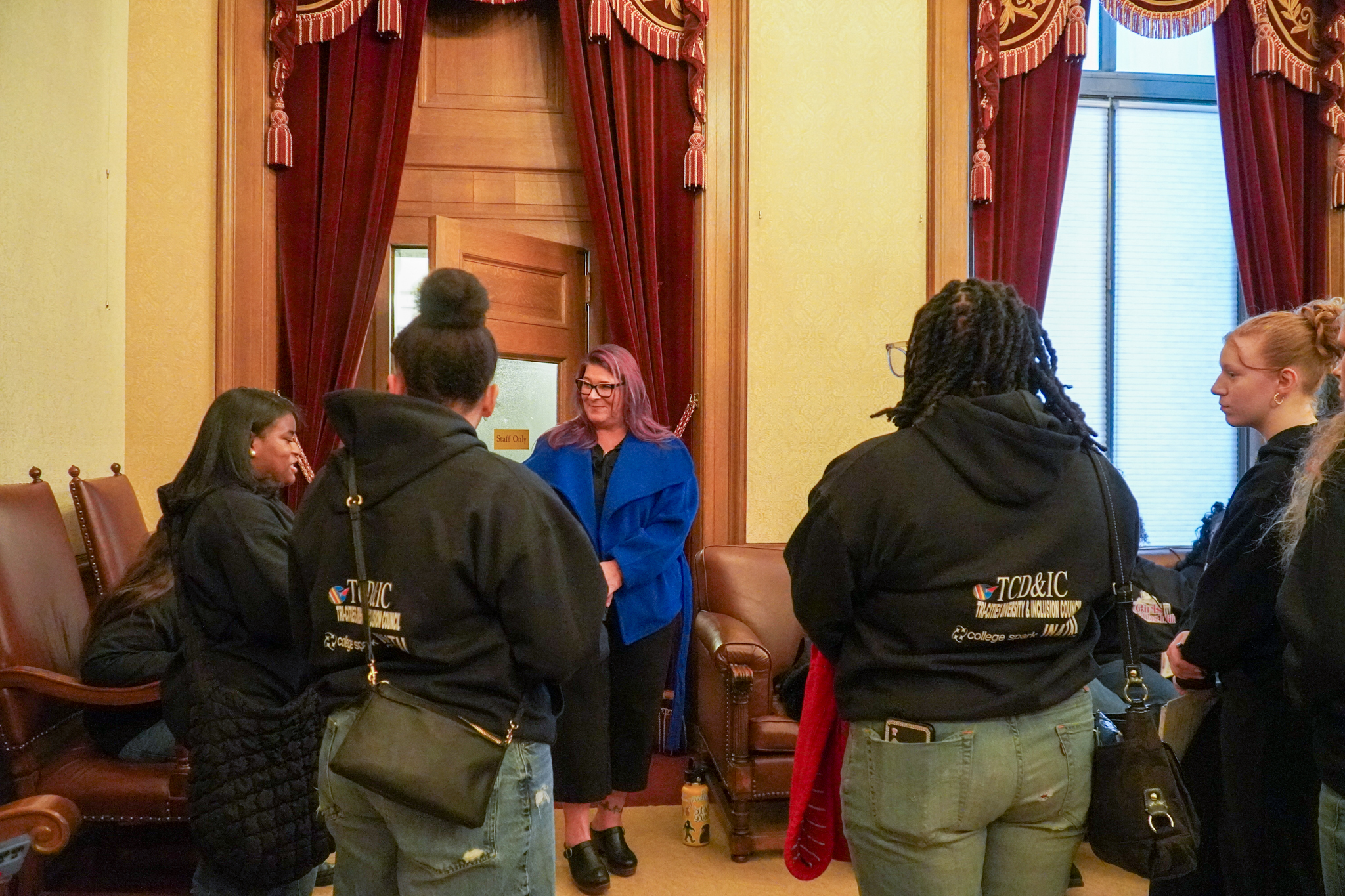 Throughout the day, students heard directly from legislators, commissioners, agency leaders, and lobbyists about what public service truly looks like. Thanks to the advocacy and partnership of Representative Jamila Taylor, more than a dozen Representatives joined students on the House floor to share about their work and answer questions. The House Floor tour created a rare opportunity for young people to picture themselves in those very seats.